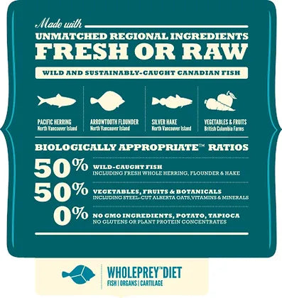 Por esta razón ACANA Wild Coast contiene pescado sostenible, capturado en estado salvaje en el Norte de la Isla de Vancouver y entregado a nuestras cocinas FRESCO y ENTERO, por lo que rebosa de calidad y sabor.