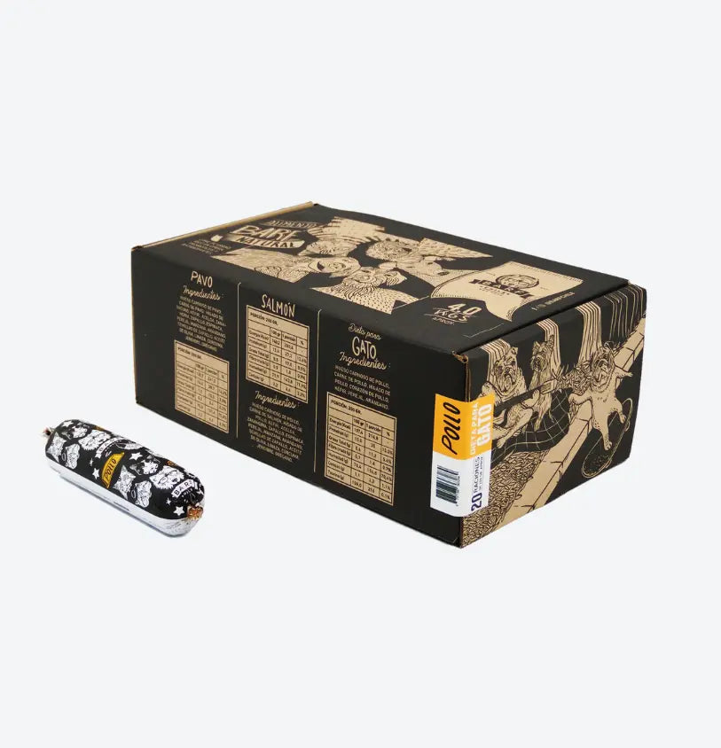 Ingredientes: Hueso carnoso de pollo, carne de pollo, pana de pollo, corazón de vacuno, kefir, arándano, perejil y pepas de zapallo.