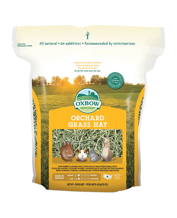 El Heno de Hierba de Huerto Oxbow es sumamente nutritivo y saludable para tu Conejo, tu Cobayo, tu Chinchillas o tu pequeño hervíboro. Entrega una fuente importante de fibra, lo que ayudará a su sistema digestivo y su salud dental. Además, su gran aroma y su irresisitble sabor estimularán el apetito de tu mascota. Los veterinarios de todo el mundo lo recomiendan. * Oxbow, única marca autorizada en Chile para comercializar Heno de Hierba de Huerto * Crujiente y sabroso. Tu mascota lo amará. * Cosechado y seleccionado a mano en nuestras granjas Oxbow * Provee fibra esencial para su salud digestiva y dental * Sin preservantes, colorantes ni saborizantes artificiales