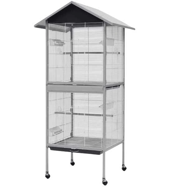 Con un diseño moderno que incluye un techo tipo caseta, esta jaula es perfecta para quienes buscan un equilibrio entre estilo y funcionalidad. Es ideal tanto para interiores como exteriores, brindando un espacio de calidad para el bienestar de tus aves.