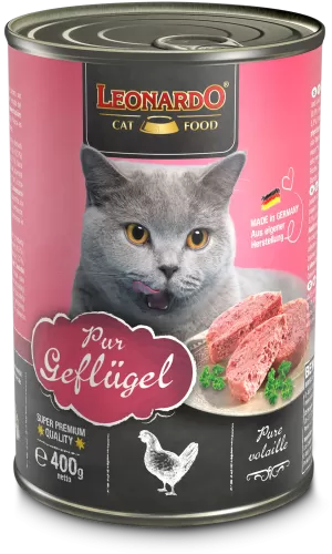 Los gatos, al igual que los felinos que viven en el medio natural, son carnívoros. Por eso solo utilizamos productos cárnicos frescos. Las latas LEONARDO Quality Selection Reich an Rind están hechas a base de carne fresca de ave y res, y corresponden a una dieta completa y balanceada para gatos adultos.
