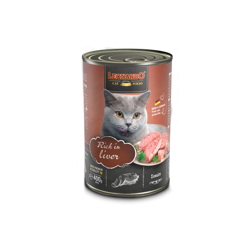 Calidad al gusto de tu gato Los gatos, al igual que los felinos que viven en el medio natural, son carnívoros. Por eso solo utilizamos productos cárnicos frescos. Las latas LEONARDO Quality Selection Reich an Leber están hechas a base de carne e hígado frescos de ave, y corresponden a una dieta completa y balanceada para gatos adultos.