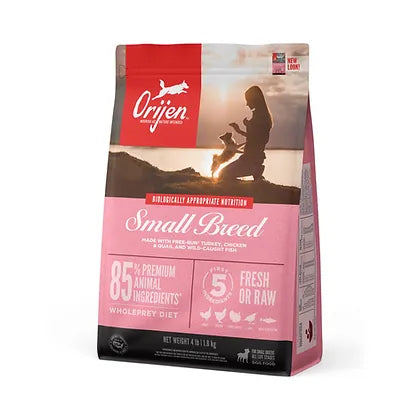 Ayude a su perro a prosperar con el poder de las recetas ricas en proteínas que proporcionan una nutrición máxima. Su perro de raza pequeña tiene ciertas necesidades nutricionales y requiere una dieta biológicamente apropiada para prosperar. La dieta ORIJEN® Small Breed está hecha específicamente para perros más pequeños, con proteínas nutritivas y nutrientes empaquetados en una forma de croquetas única que les resulta más fácil de comer. Repleto de ingredientes animales WholePrey, el alimento ORIJEN está hecho con las partes de la presa más densas en nutrientes y suculentas para brindar la nutrición que los perros necesitan. El resultado es una dieta incomparable para su pequeño compañero canino. Nutre como lo pretendía la naturaleza Los primeros 5 ingredientes son ingredientes frescos o crudos de aves y pescado. Nuestros ingredientes frescos utilizan la refrigeración como único método de conservación y nuestros ingredientes crudos se congelan en su máxima frescura. Alimentos ricos en proteínas para satisfacer las necesidades energéticas más altas y una nutrición equilibrada para ayudar a mantener un peso saludable 85% de ingredientes de pescado y aves de corral de calidad, que proporcionan una fuerte fuente de proteínas, vitaminas y minerales esenciales Nuestra auténtica dieta WholePrey presenta las partes más suculentas de la presa, como aves de corral o pescado, órganos y huesos para imitar lo que consumían los antepasados de su perro en la naturaleza. Fabricado en EE. UU. Con los mejores ingredientes del mundo.