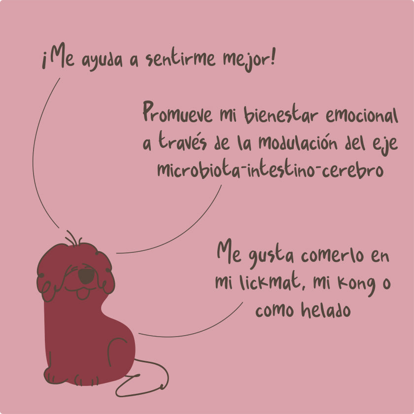 Función: Promueve el bienestar emocional a través de la modulación del eje microbiota-intestino-cerebro, ayudando a tu perro a sentirse más relajado y equilibrado.