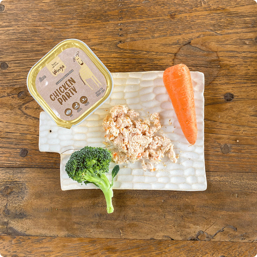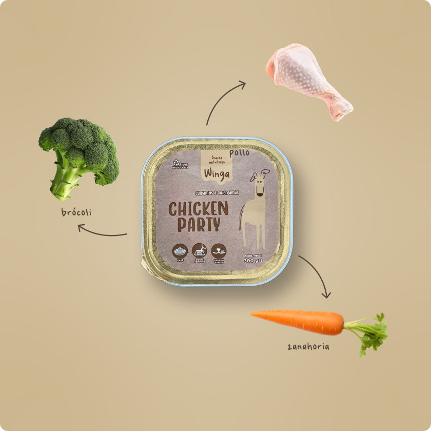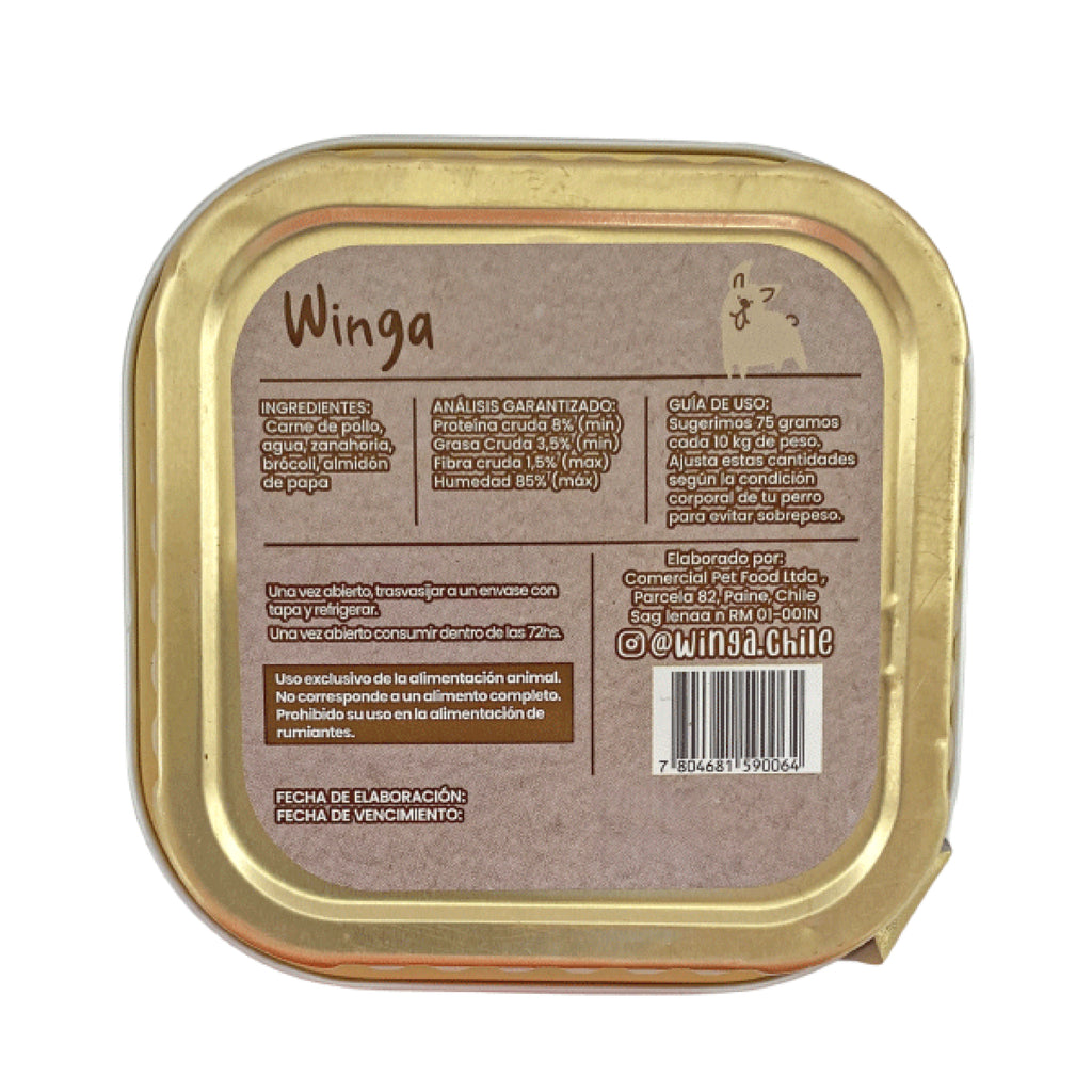 Ingredientes: Carne de pollo, agua, zanahoria, brócoli, almidón de papa (2%).