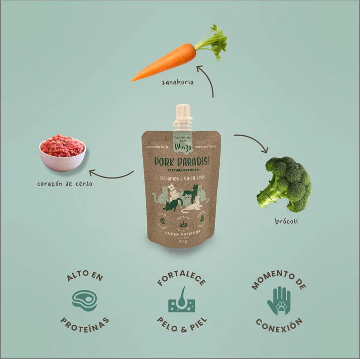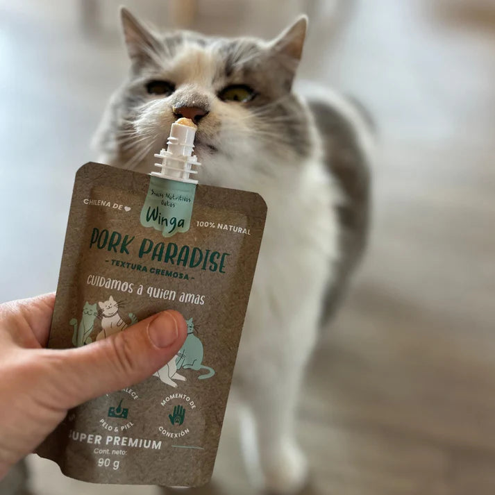 Cuida de la salud y el pelaje de tu gato con Pork Paradise Gatos. ¡Brillo, suavidad y protección para su corazón!