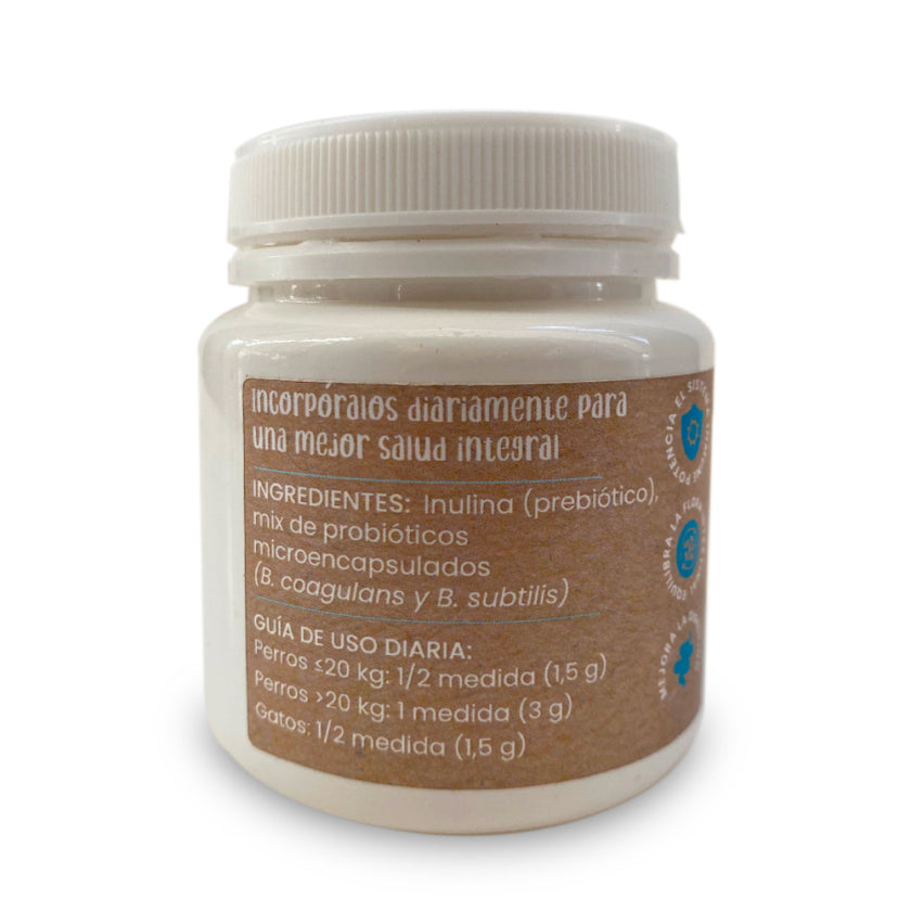 Ingredientes: Inulina (prebiótico), mix de probióticos microencapsulados (B. coagulans y B. subtilis)